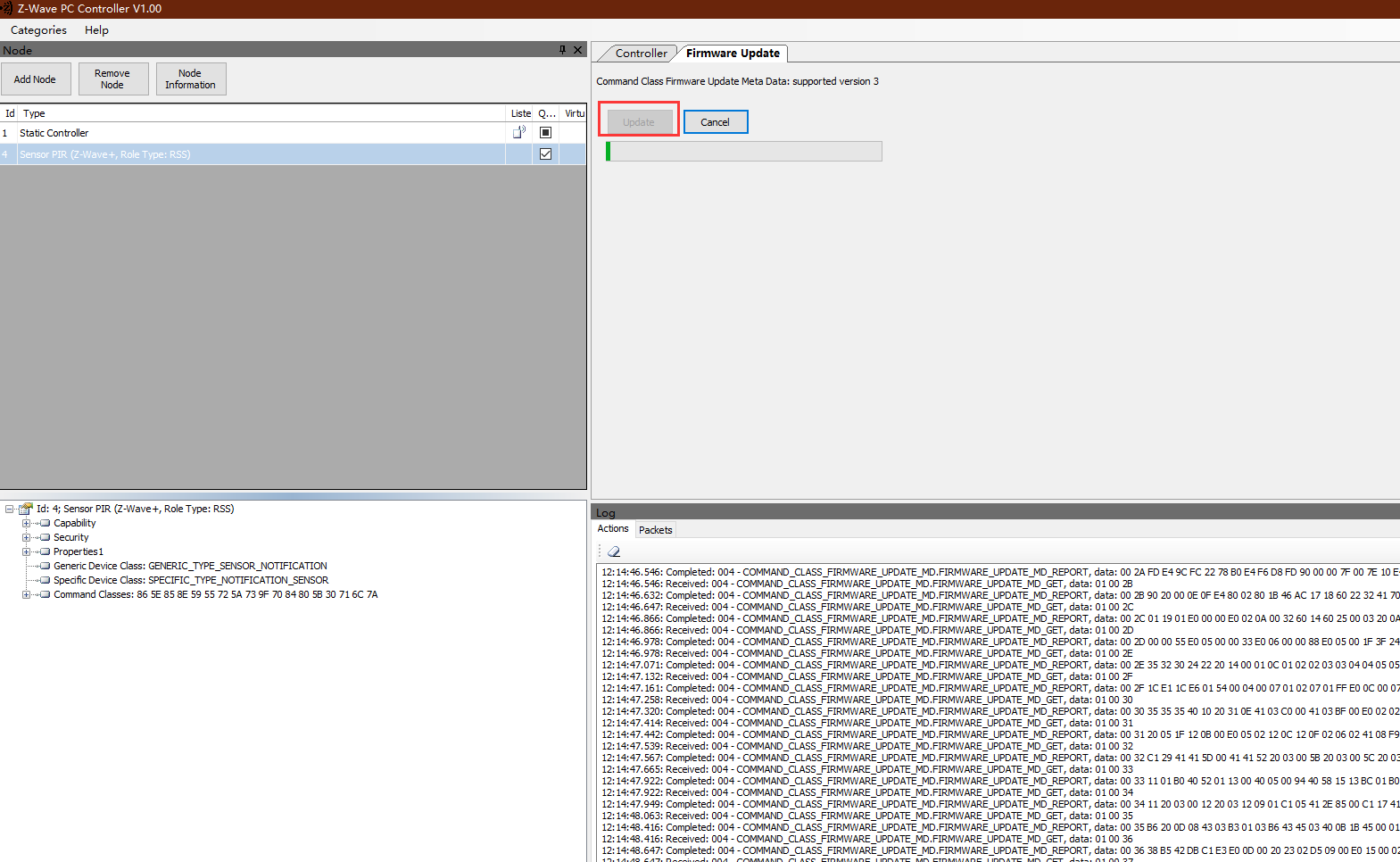 To upgrade your Smoke Detector (POPE009402) using a Z-Stick or any other general Z-Wave USB Adapter: